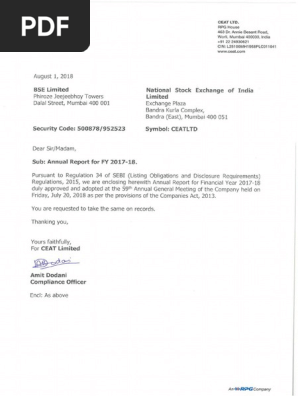Dear Shareholder The Board of Directors of CEAT Limited at its Meeting held on May 5 2021 has recommended a Dividend of Rs.