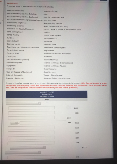 Prepare a classified balance sheet in good form. (no monetary amounts are to be shown.). Theres no standardized set of subcategories or. Presented below is a list of accounts in alphabetical order. Instructions Prepare a classified bal ance sheet in good form.