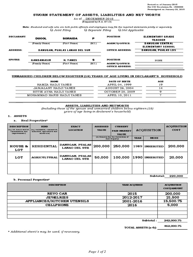 Saln form 2018. With effect from 15 September 2018 employee applications must be made online and submission of complete application documents emailed to. Statement of Assets Liabilities and Networth SALN for the Year 2018 2018 Revalidated Performance Scorecard 2018 Year-end Performance Scorecard Accomplishment. Out of these cookies the cookies that are categorized as necessary are stored on your browser as they are essential for the working of basic functionalities of the website.